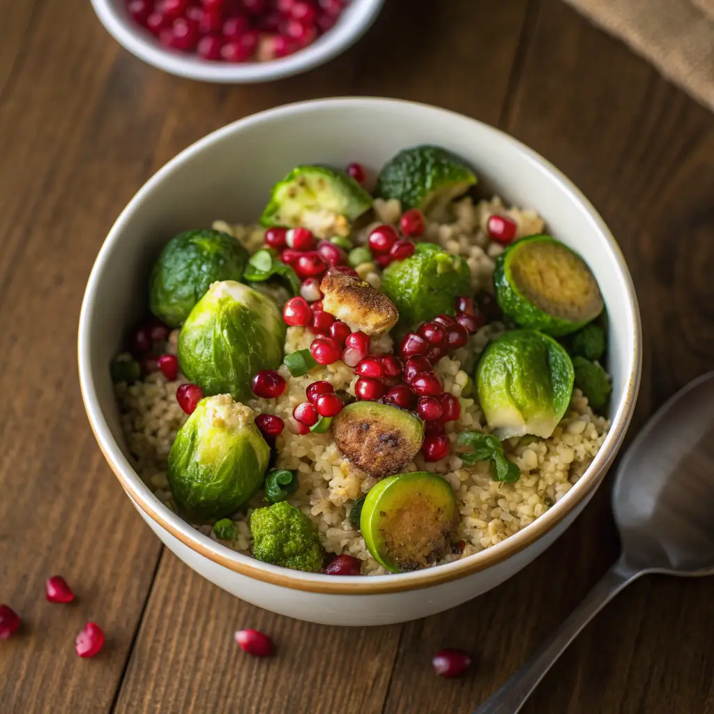 Healthy, colorful, and bursting with flavor, the Quinoa Bowl with Brussels and Pomegranate is a perfect balance of texture, nutrition, and taste. This dish brings together the earthy depth of roasted Brussels sprouts, the nutty heartiness of quinoa, and the juicy brightness of fresh pomegranate seeds. Drizzled with a light citrus dressing, it’s the kind of wholesome meal that feels both nourishing and indulgent.