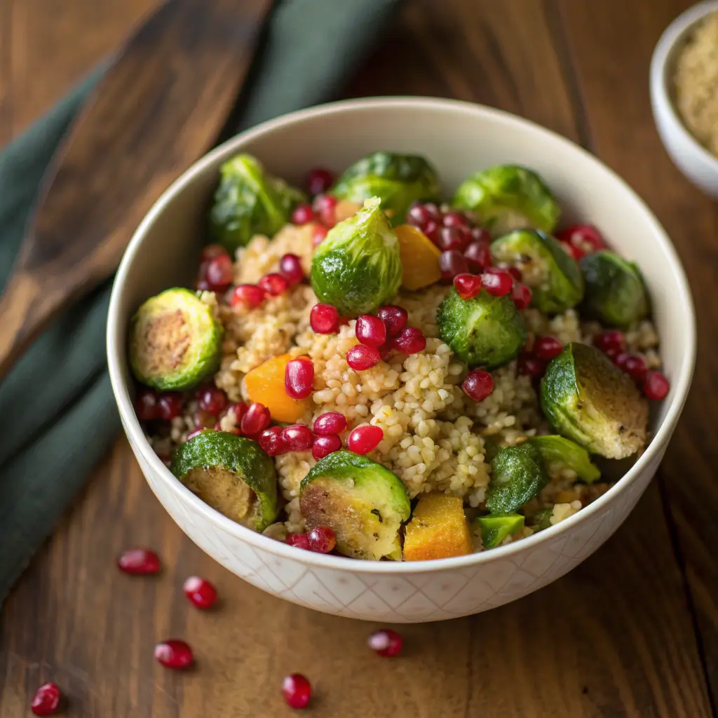 Quinoa Bowl with Brussels and Pomegranate – A Vibrant, Nutrient-Packed Power Meal