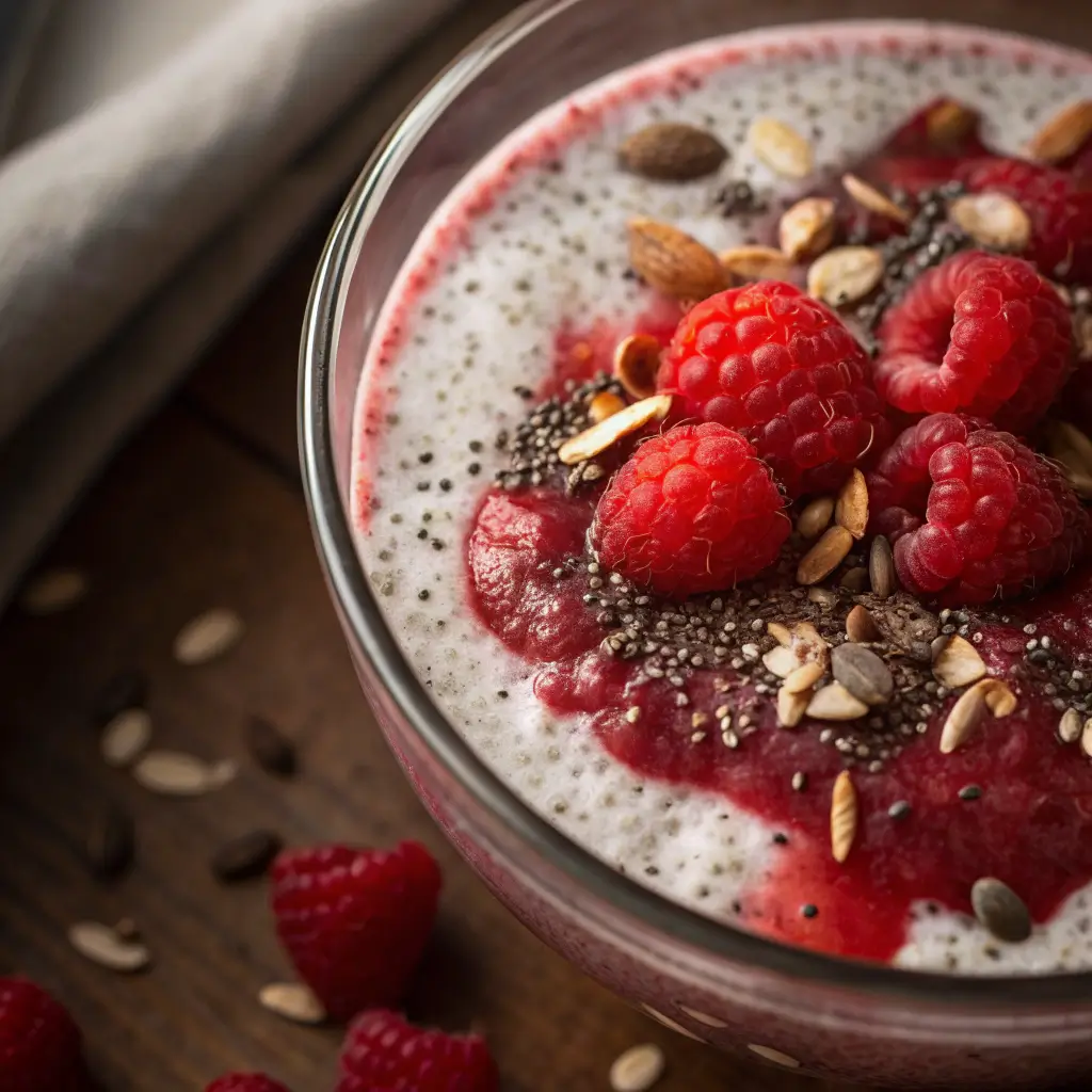- Coconut Raspberry Chia Pudding: Use coconut milk and top with toasted coconut flakes.