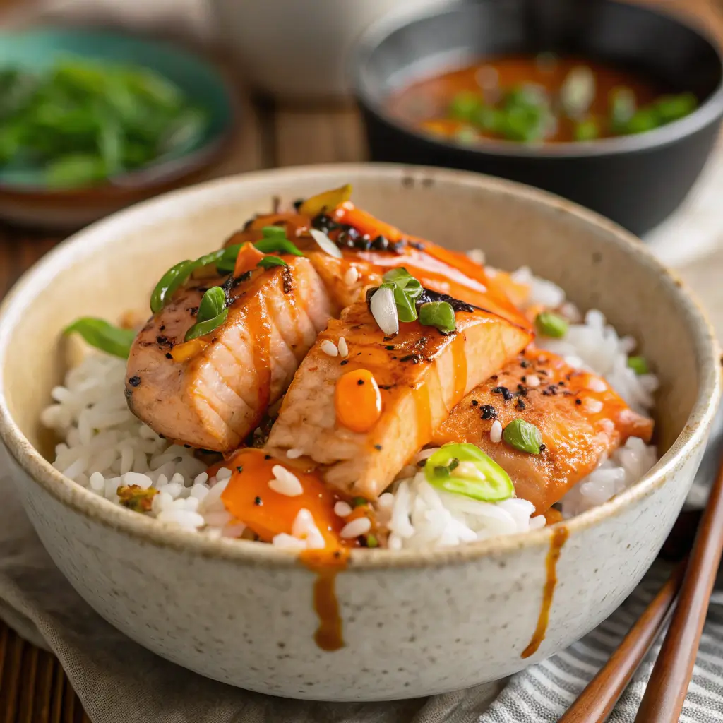 This Salmon Rice Bowl with Sticky Orange-Gochujang Glaze delivers the perfect combination of comfort and sophistication. With its bold fusion of sweet citrus and Korean spice, it’s a dish that excites your taste buds while nourishing your body. Whether for a weekday dinner or a meal to impress, this vibrant bowl is a guaranteed hit—simple to make, stunning to serve, and irresistibly flavorful.