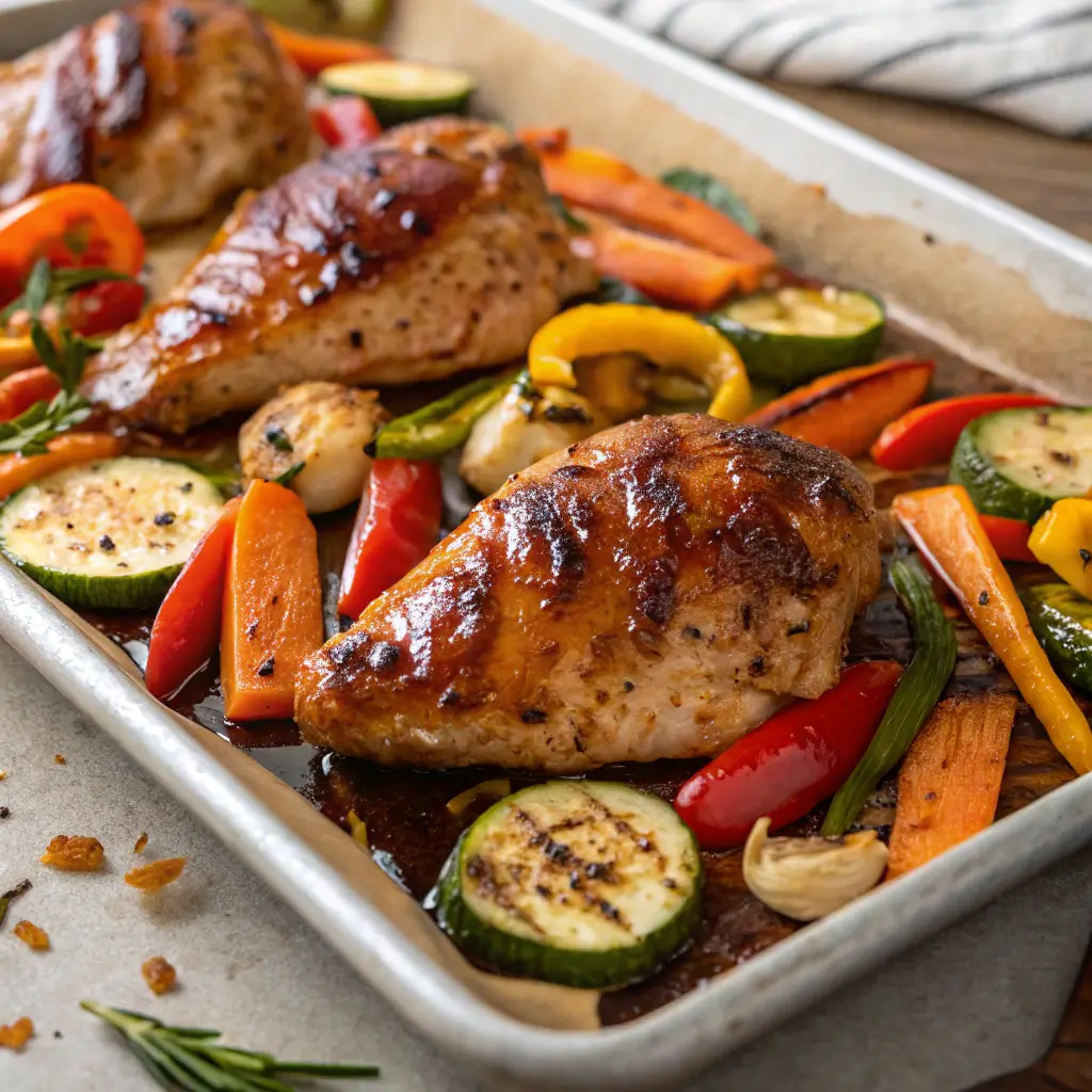 This sheet-pan dinner is versatile. Use your favorite seasonal vegetables, adjust the glaze sweetness, or serve over grains for a complete, balanced meal. It’s nutritious, colorful, and incredibly satisfying, perfect for those who want a healthy dinner without spending hours in the kitchen.