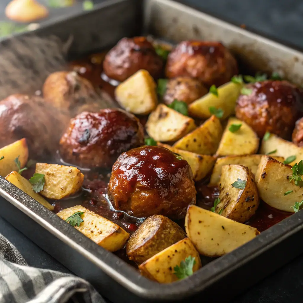 Sheet‑Pan BBQ Meatballs with Potatoes