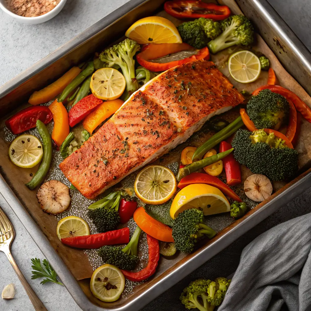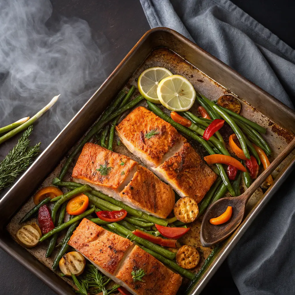 This Sheet‑Pan Cajun Salmon & Veggies is a quick, flavorful, and healthy one-pan meal perfect for weeknights. Bold Cajun-seasoned salmon paired with colorful roasted vegetables creates a balanced, satisfying, and visually appealing dinner.
