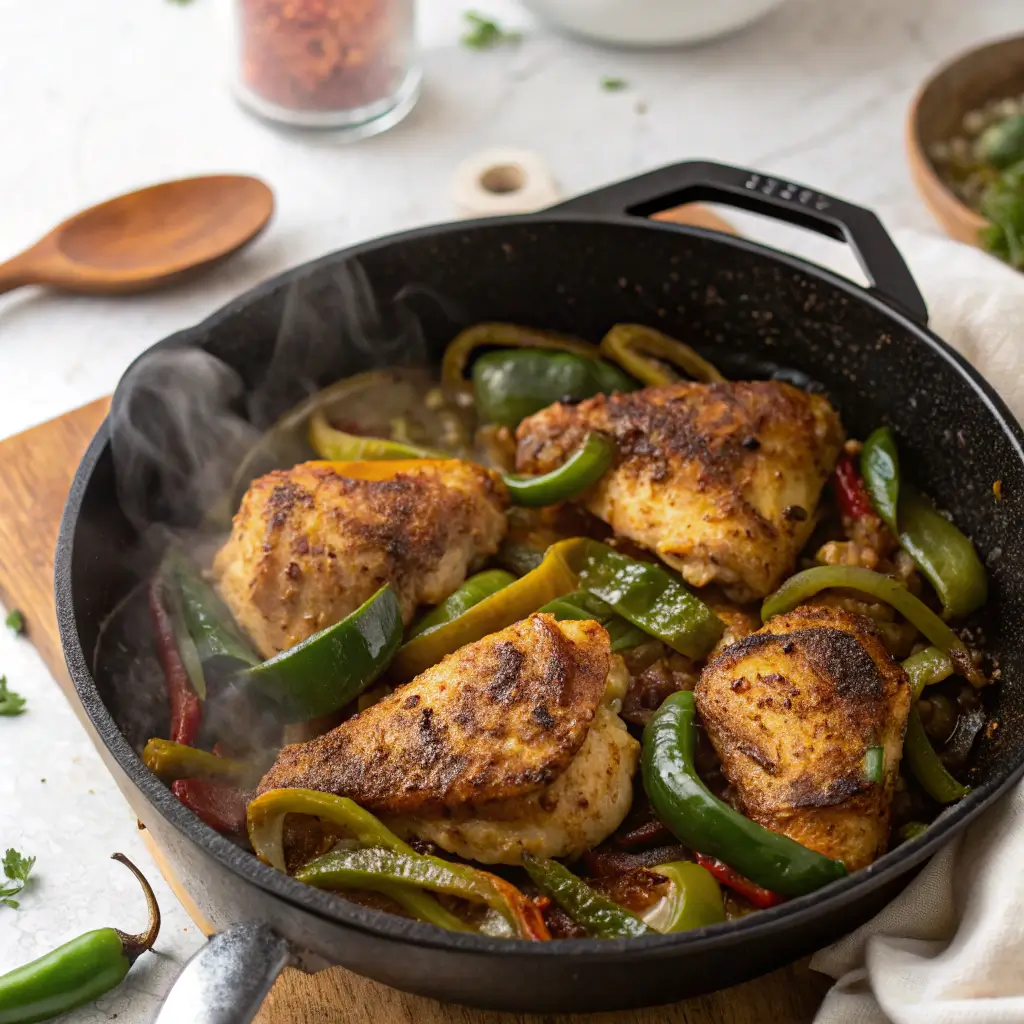 Craving a vibrant, spicy, and easy dinner? This Skillet Chicken & Poblano Peppers recipe brings tender, juicy chicken together with roasted poblano peppers in a savory, flavor-packed skillet meal. Ready in under 30 minutes, it’s perfect for weeknight dinners, family meals, or casual entertaining.