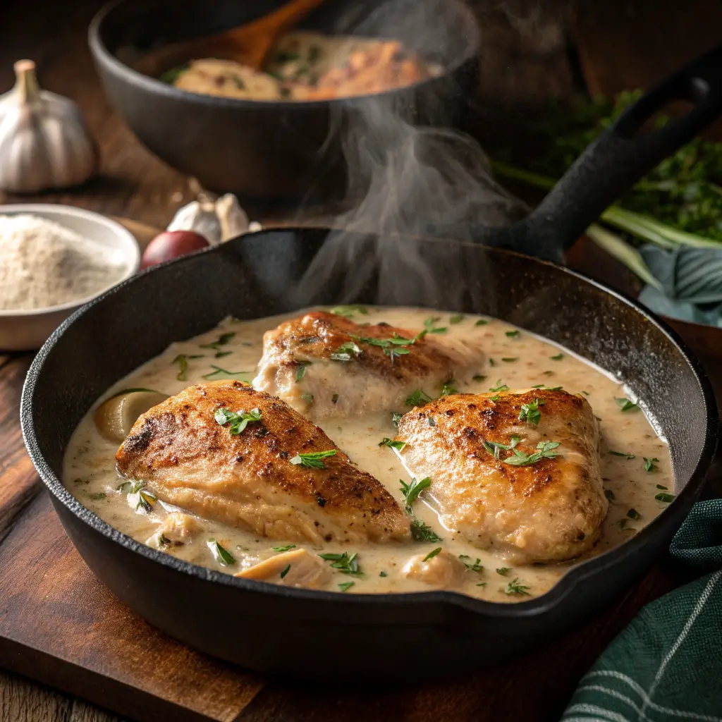 This one-pan wonder features tender chicken breasts or thighs seared until golden, then simmered in a luscious sauce made with garlic, cream, and herbs. The result is a restaurant-worthy dish that pairs beautifully with pasta, rice, mashed potatoes, or even roasted vegetables.