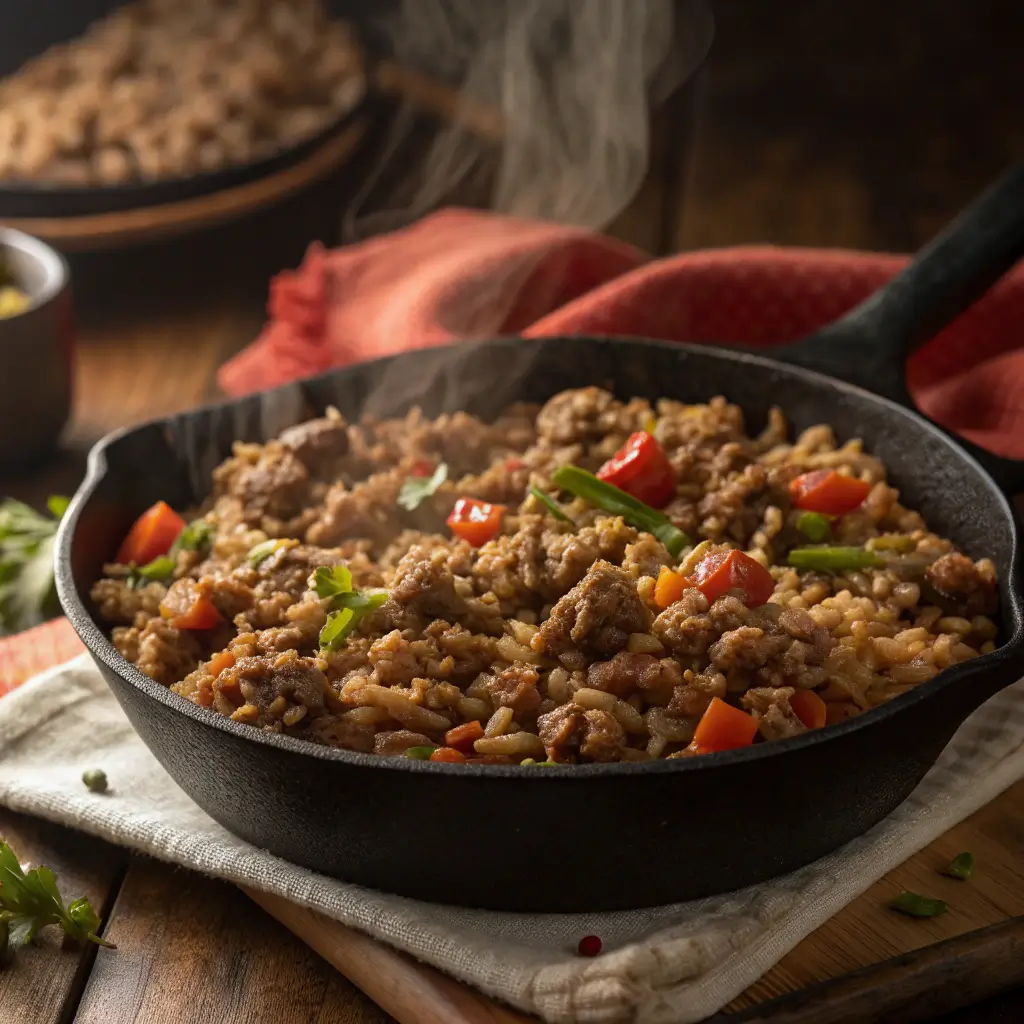 Skillet meals have long been a staple of home cooking because they are efficient and versatile, especially when combining protein, grains, and vegetables. Ground beef and rice are classic pairings in many cuisines, from American comfort food to Mediterranean-inspired skillet dishes.