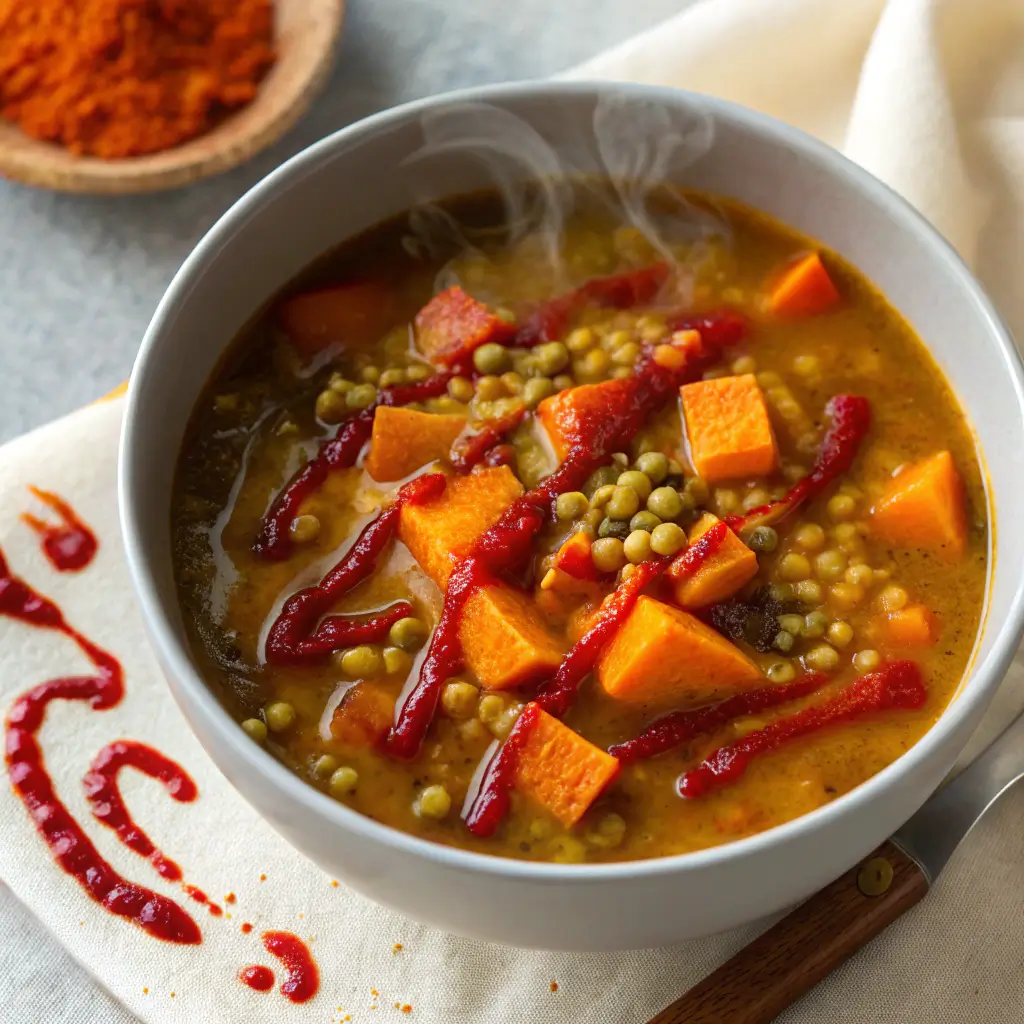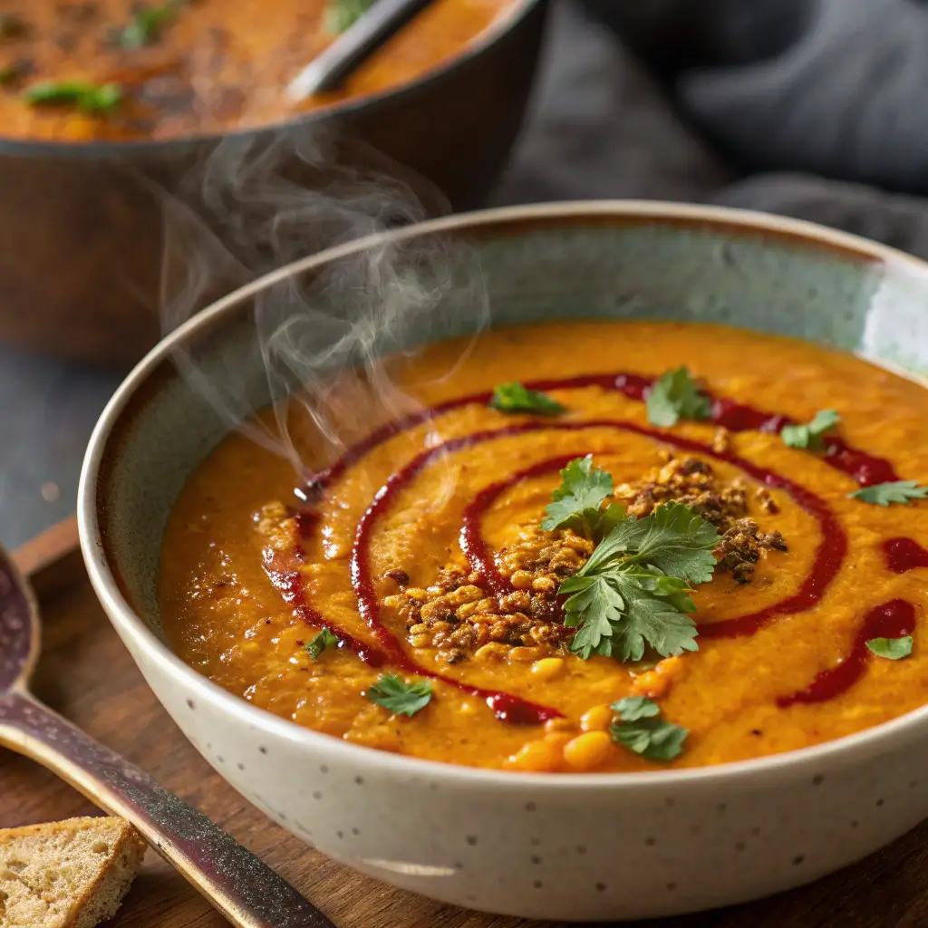 Spiced Carrot & Lentil Soup with Harissa Drizzle: A Flavorful Comfort Bowl