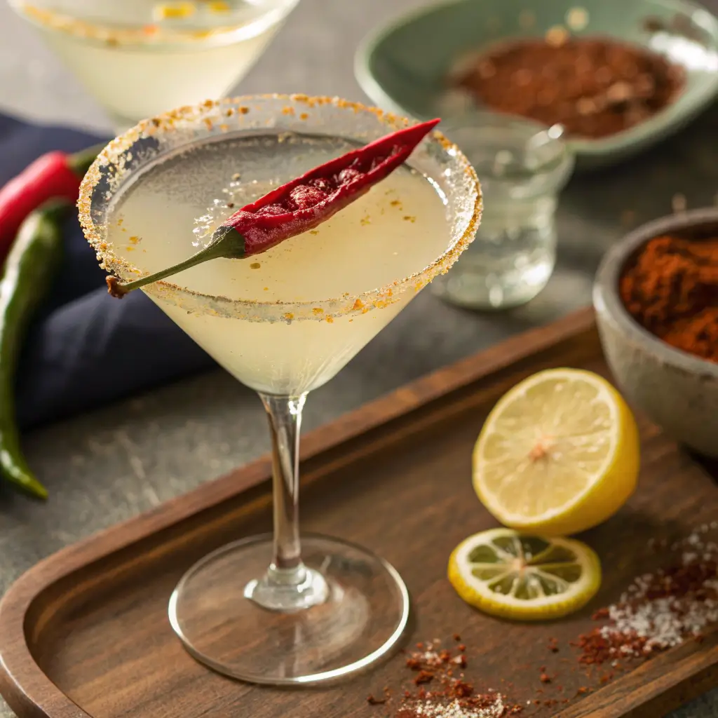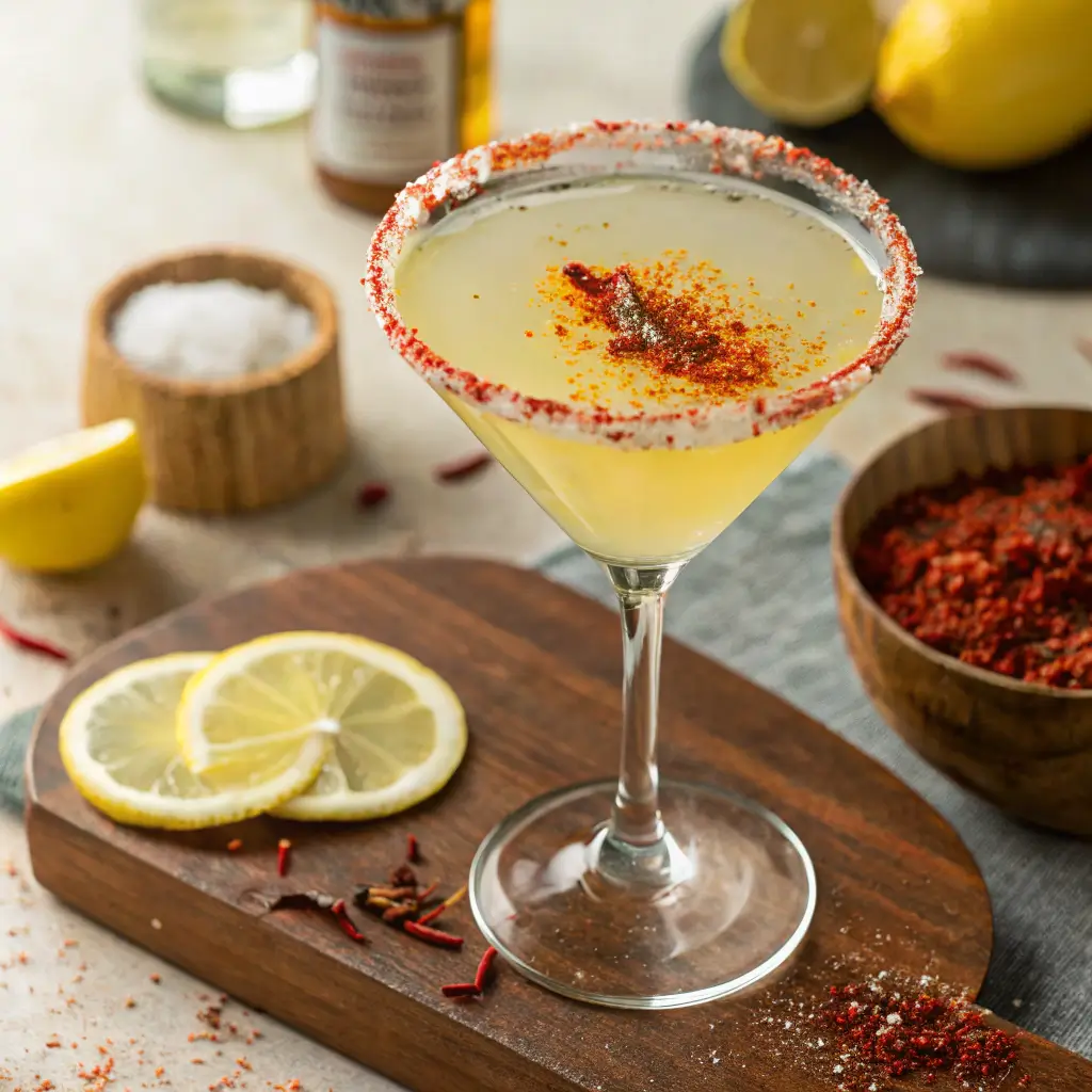 The Spicy Lemon Drop Martini is a bold and exciting twist on the classic Lemon Drop Martini. It combines the bright, zesty flavor of fresh lemon with a subtle spicy kick, creating a cocktail that is both refreshing and intriguing. The heat balances the sweetness and tartness, making every sip a flavorful experience.