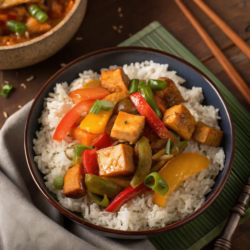 When it comes to quick, colorful, and satisfying meals, Sweet and Sour Tofu Stir-Fry with Rice checks every box. This plant-based favorite combines crispy golden tofu cubes with a glossy sweet-and-tangy sauce, stir-fried vegetables, and a bed of fluffy rice for the perfect weeknight dinner. Every bite balances crunch, flavor, and comfort — proving that healthy vegan food can be every bit as bold and crave-worthy as takeout.