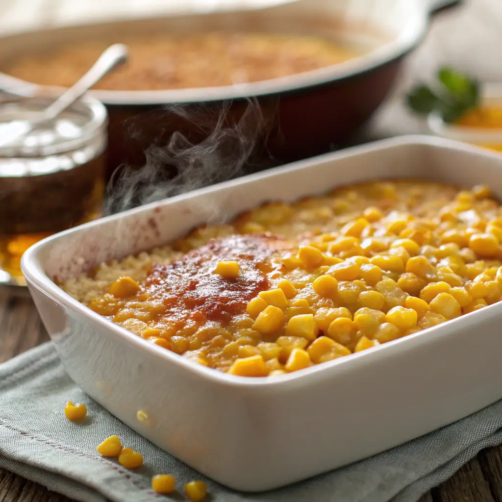 Corn casseroles have deep roots in American cooking, especially in the South and Midwest. Traditionally made with creamed corn, whole-kernel corn, and a bready component like corn muffin mix, it’s a dish that blends the line between side and dessert.
