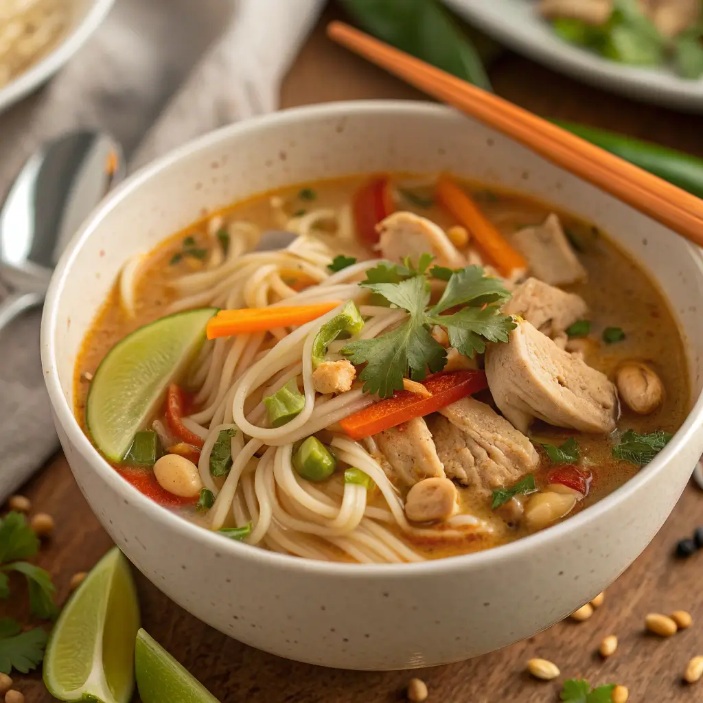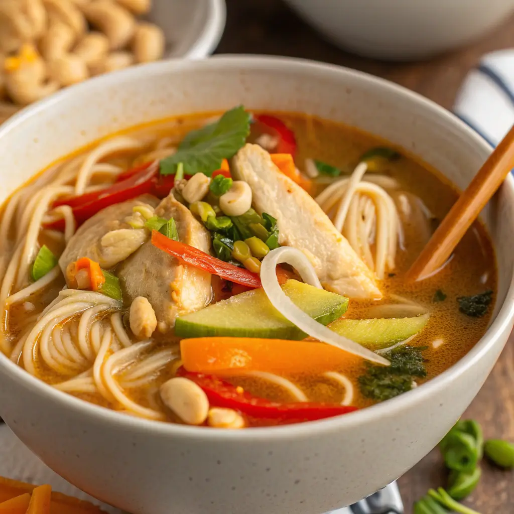 Thai Peanut Chicken Noodle Soup with Veggies: Creamy, Savory, and Flavorful