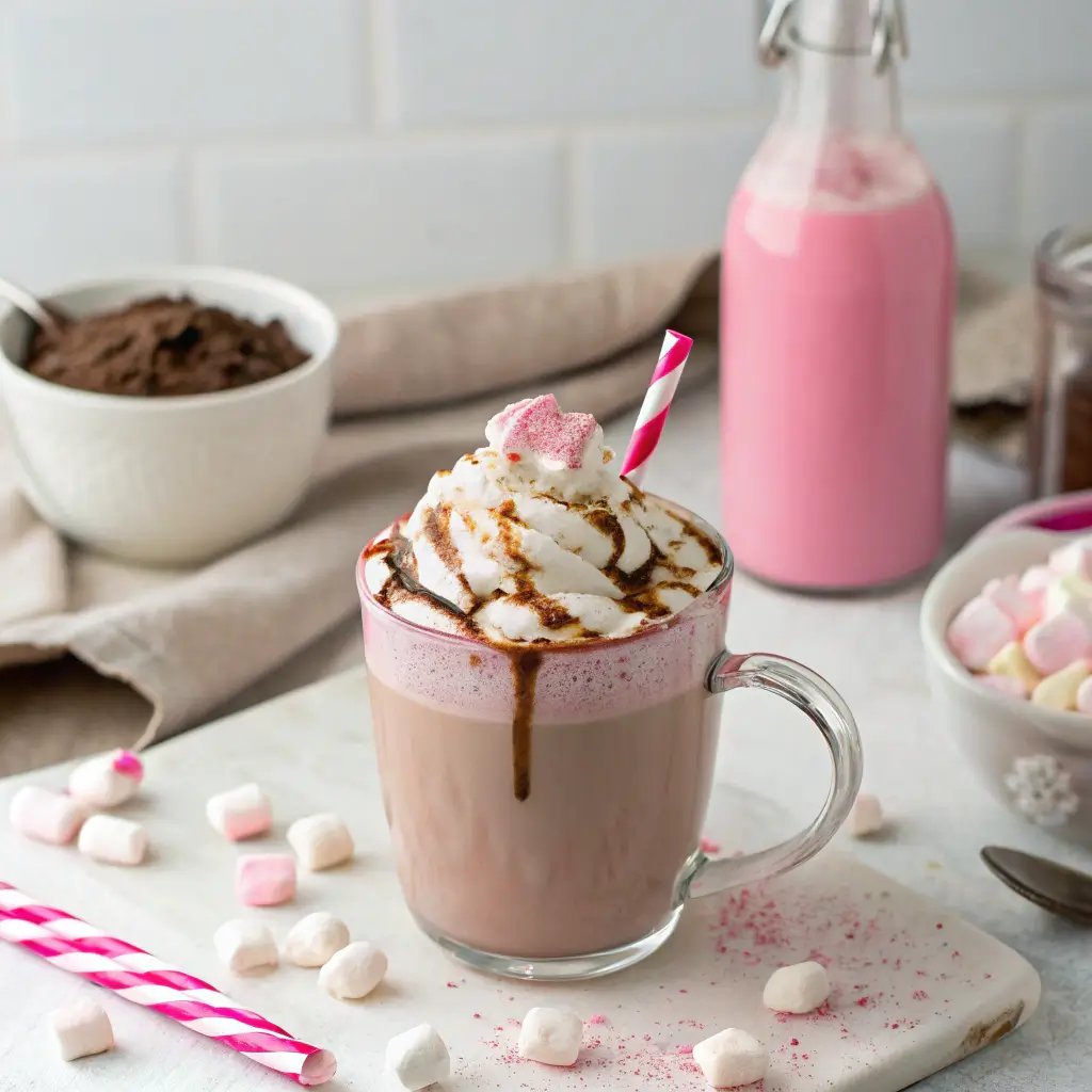 - Serve and Garnish: Pour the pink hot chocolate into your favorite mug. Top it with whipped cream, sprinkles, or marshmallows for an extra touch of indulgence. For a festive twist, add edible glitter or a drizzle of caramel.