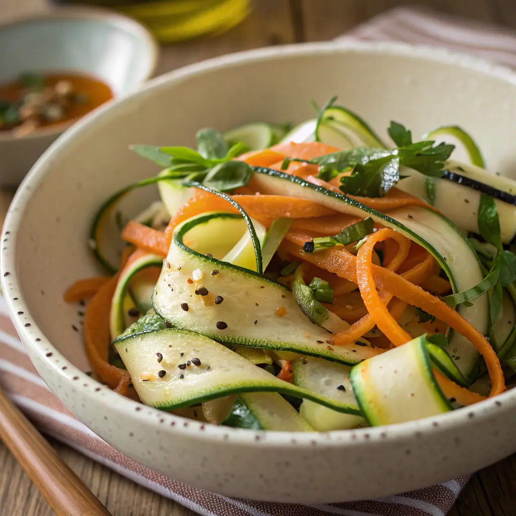 Zucchini and carrots are ideal for this preparation. The zucchini offers a mild, slightly nutty flavor, while carrots bring a natural sweetness and a vibrant pop of color. Together, they create balance—both in taste and in aesthetics. Add a tangy vinaigrette and some fresh herbs, and you have a dish that’s light, healthy, and brimming with freshness.