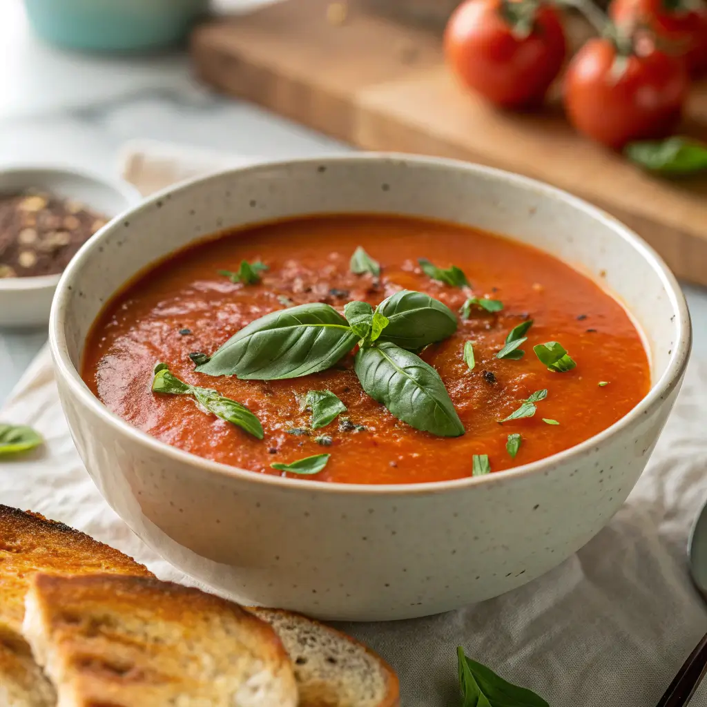 Ladle the soup into bowls and garnish with fresh basil leaves or a drizzle of olive oil. Serve with crusty bread, garlic croutons, or a classic grilled cheese sandwich for a comforting meal.