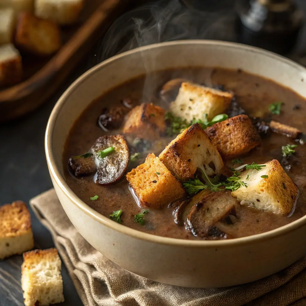 Truffle Mushroom Soup with Gruyère Croutons
