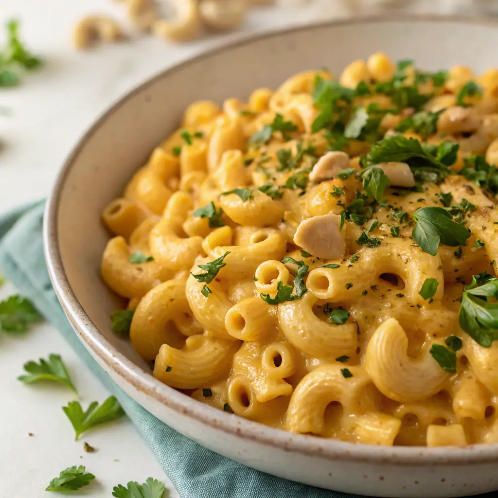 The Vegan Cashew Cream Mac & Cheese with Herbs proves that you don’t need dairy to enjoy pure comfort. With its silky cashew base, aromatic herbs, and rich depth of flavor, it redefines what vegan comfort food can be — indulgent yet wholesome, simple yet sophisticated.