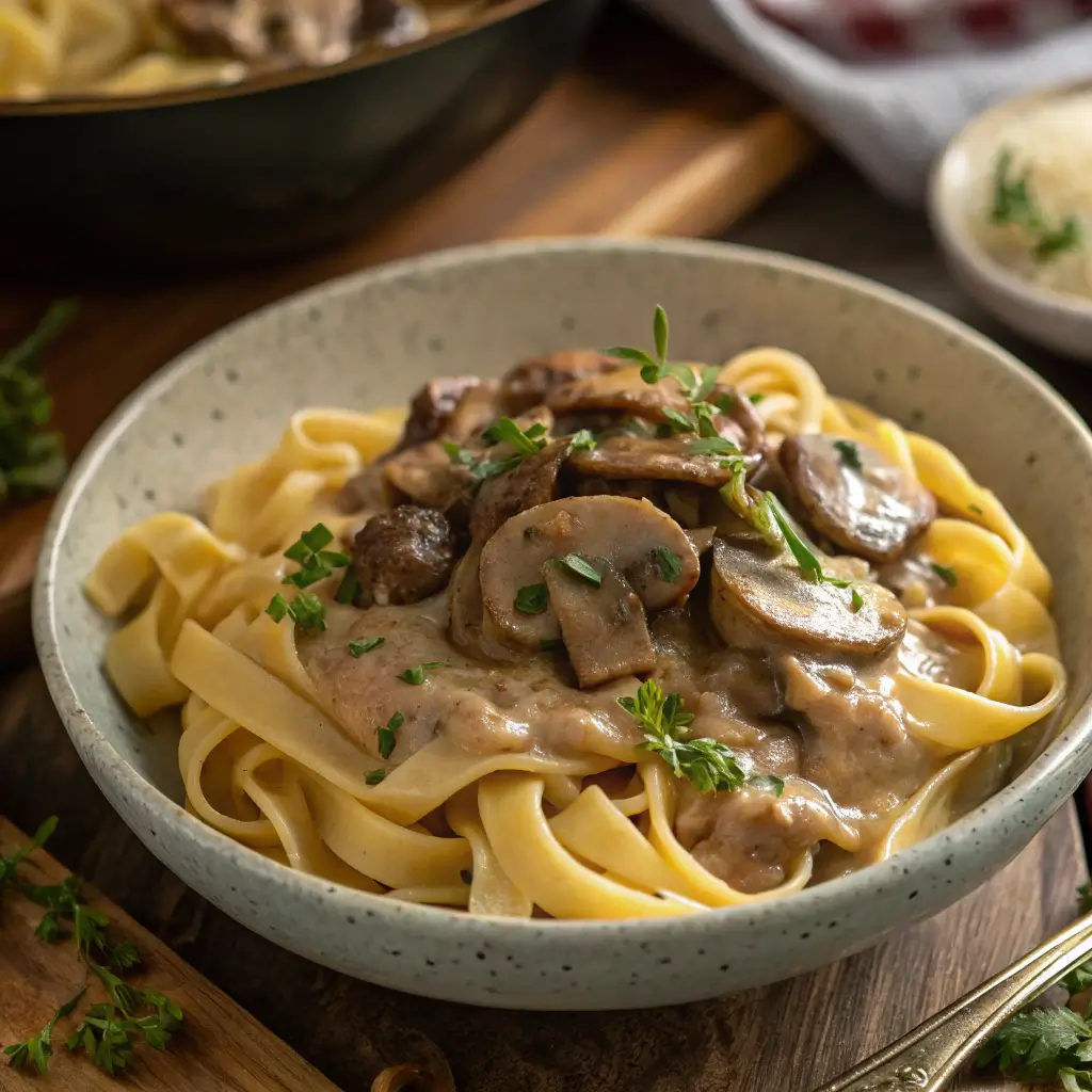 The combination of earthy mushrooms, tender noodles, and a velvety vegan sauce ensures every bite is packed with flavor and texture. This recipe is designed to be simple, customizable, and quick to prepare, making it an excellent choice for anyone looking for a comforting, plant-based meal that doesn’t compromise on taste.
