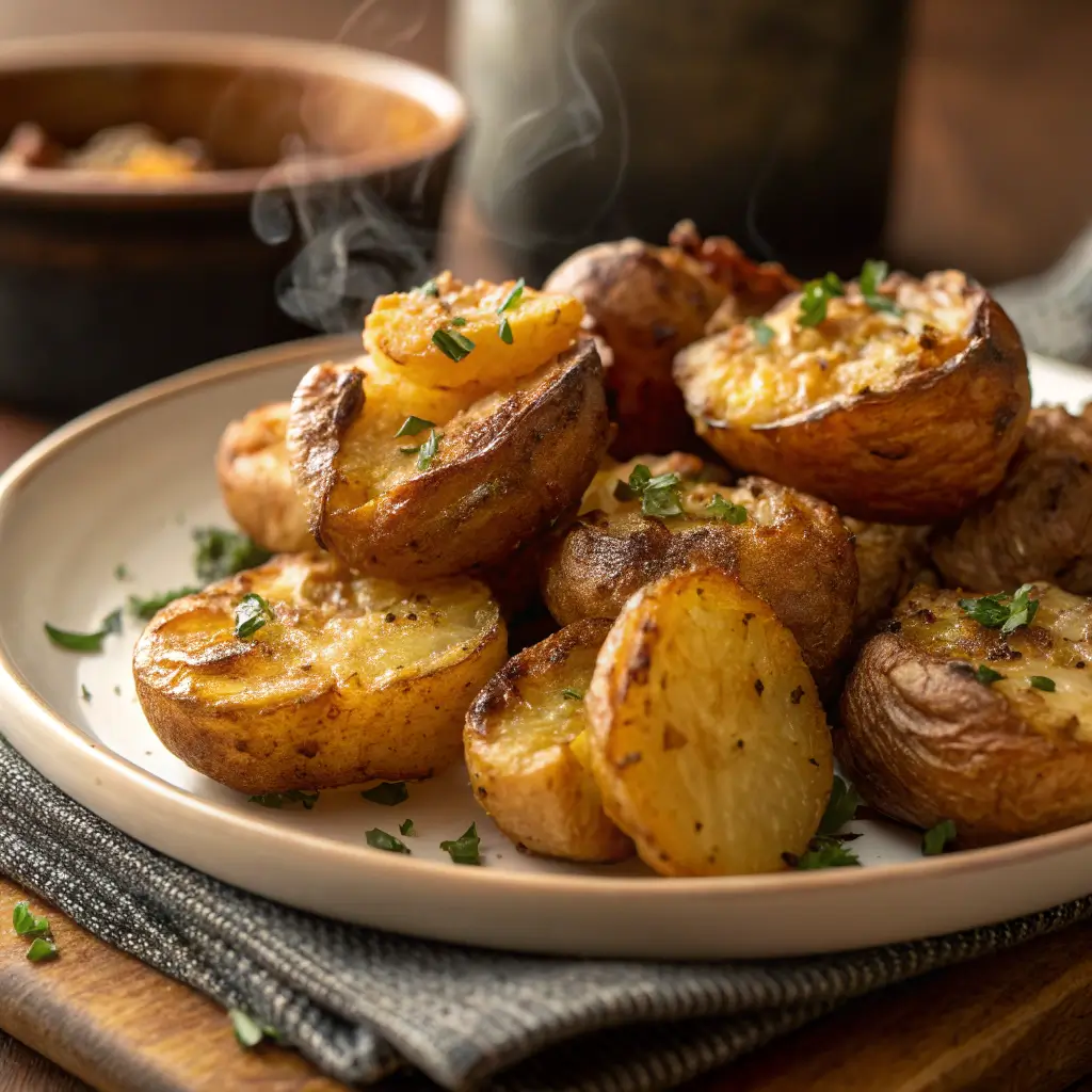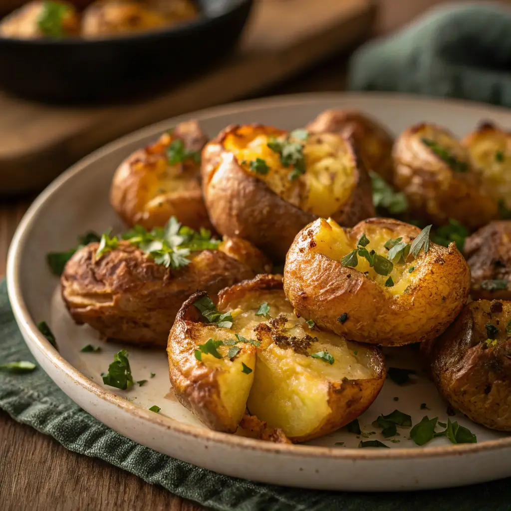 Unlike traditional roasted potatoes that can take 45–60 minutes, this recipe uses par-cooked small potatoes, smashed and roasted to achieve maximum crispiness in record time. The combination of olive oil, garlic, and herbs creates an irresistible flavor and aroma.