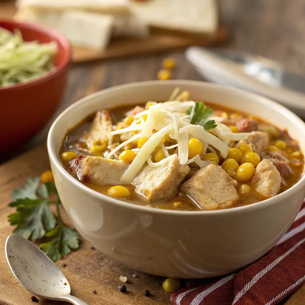 If you’re craving something warm, creamy, and full of flavor, White Turkey Chili with Corn & Monterey Jack is the perfect cozy meal to make any night of the week. Unlike traditional red chili, this lighter version features tender ground turkey, sweet corn, creamy white beans, and a blend of fragrant spices — all simmered together to create a bowl of hearty comfort.