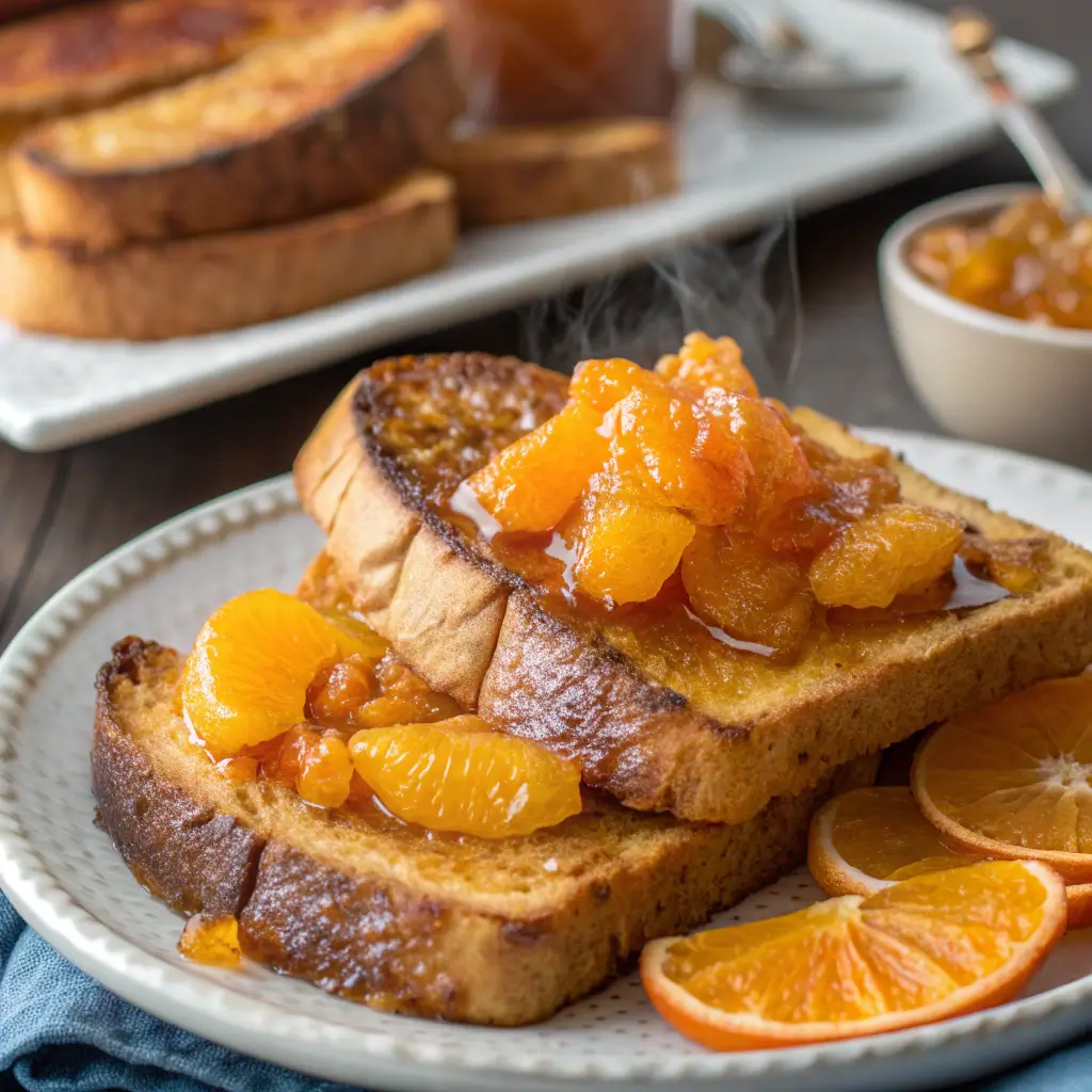 Incorporating citrus marmalade is a seasonal twist that highlights the bright, tangy flavors of winter fruits like oranges, lemons, and tangerines. Marmalade adds natural sweetness with a slight tart edge, which balances the richness of the custard and bread. This approach is inspired by classic European brunch recipes, where fruit preserves are often paired with custardy baked goods for both flavor and elegance. By combining traditional techniques with seasonal ingredients, this dish becomes a modern, sophisticated breakfast option that is both comforting and visually stunning.